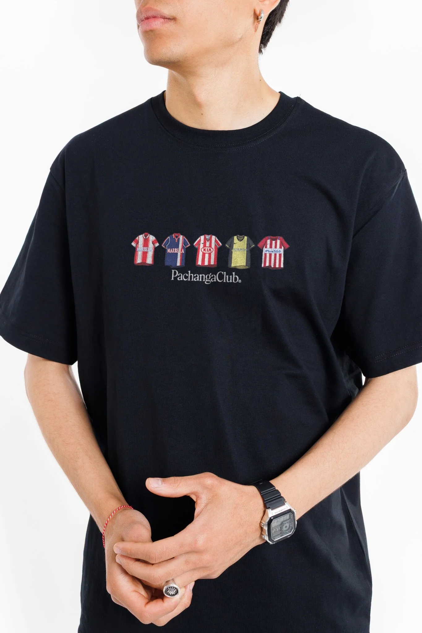 Inspirada en las equipaciones históricas colchoneros, esta camiseta celebra la historia del club desde una perspectiva contemporánea. El color negro aporta versatilidad y elegancia, permitiendo combinarla tanto con prendas urbanas como deportivas, sin perder su esencia futbolera.