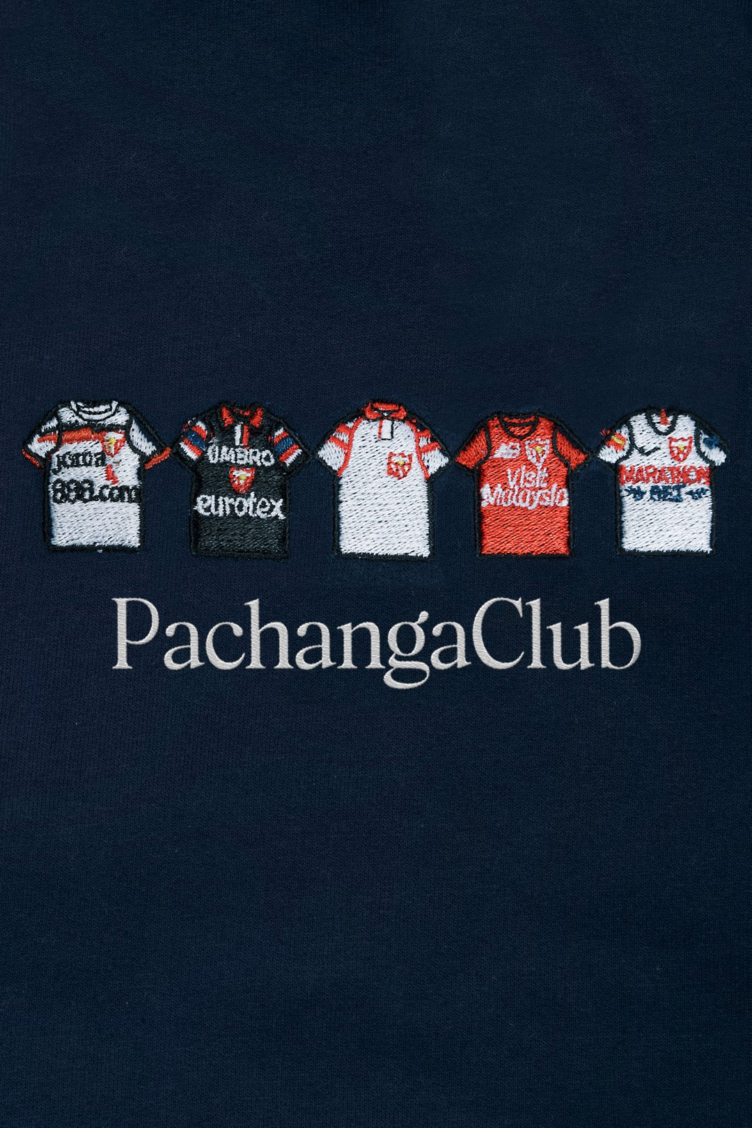 La sudadera Equipaciones Históricas Sevillistas en azul marino rinde homenaje a las camisetas clásicas que han marcado la historia del fútbol sevillista, reinterpretadas con el estilo urbano y contemporáneo de Pachanga Club. Una prenda diseñada para quienes combinan pasión futbolera con moda casual.